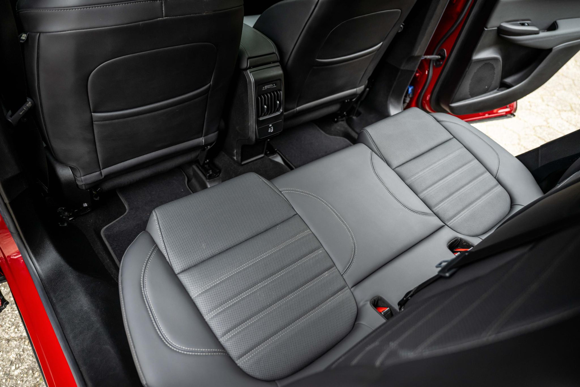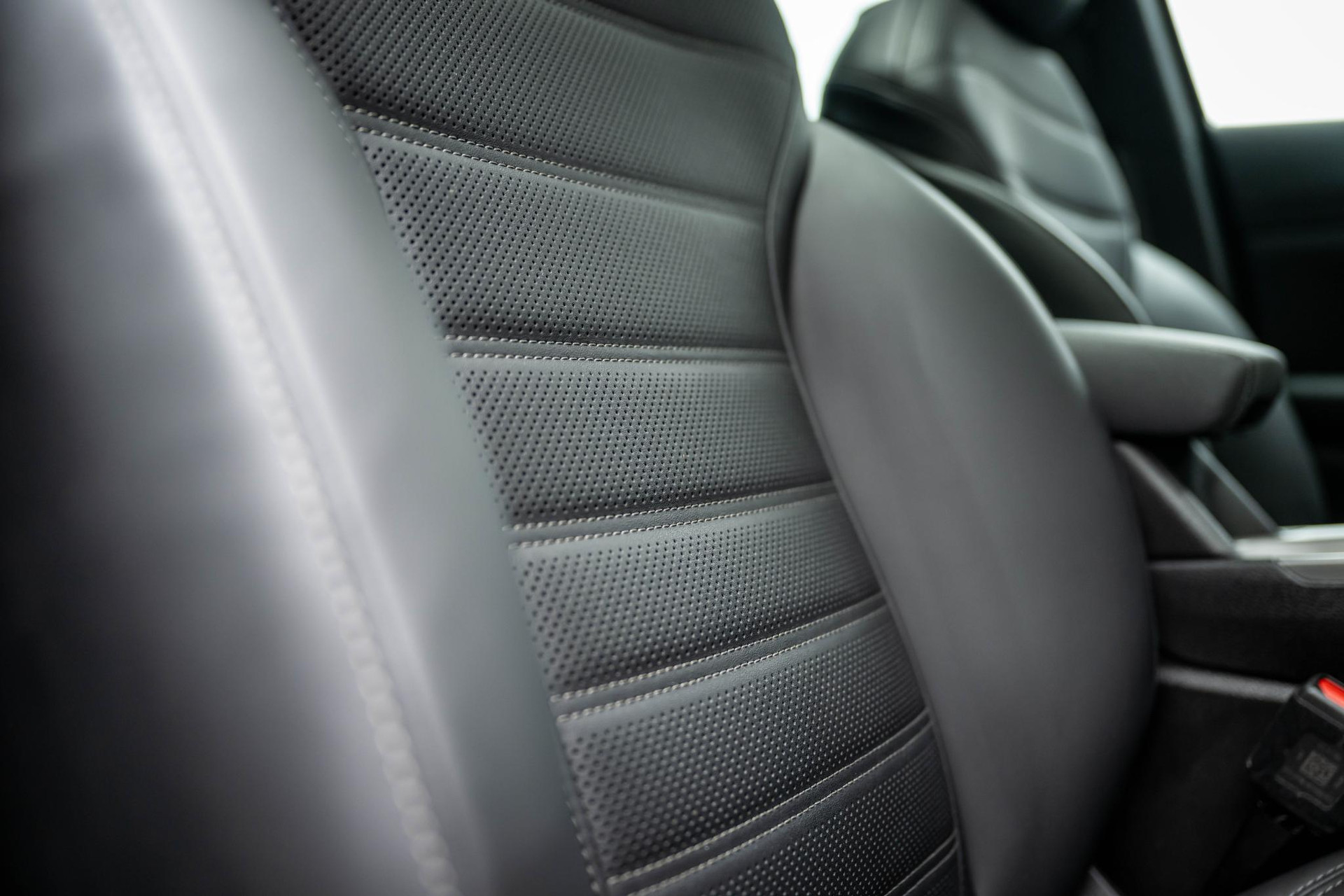 Geperforeerd zwart lederen bekleding met grijze stiksels