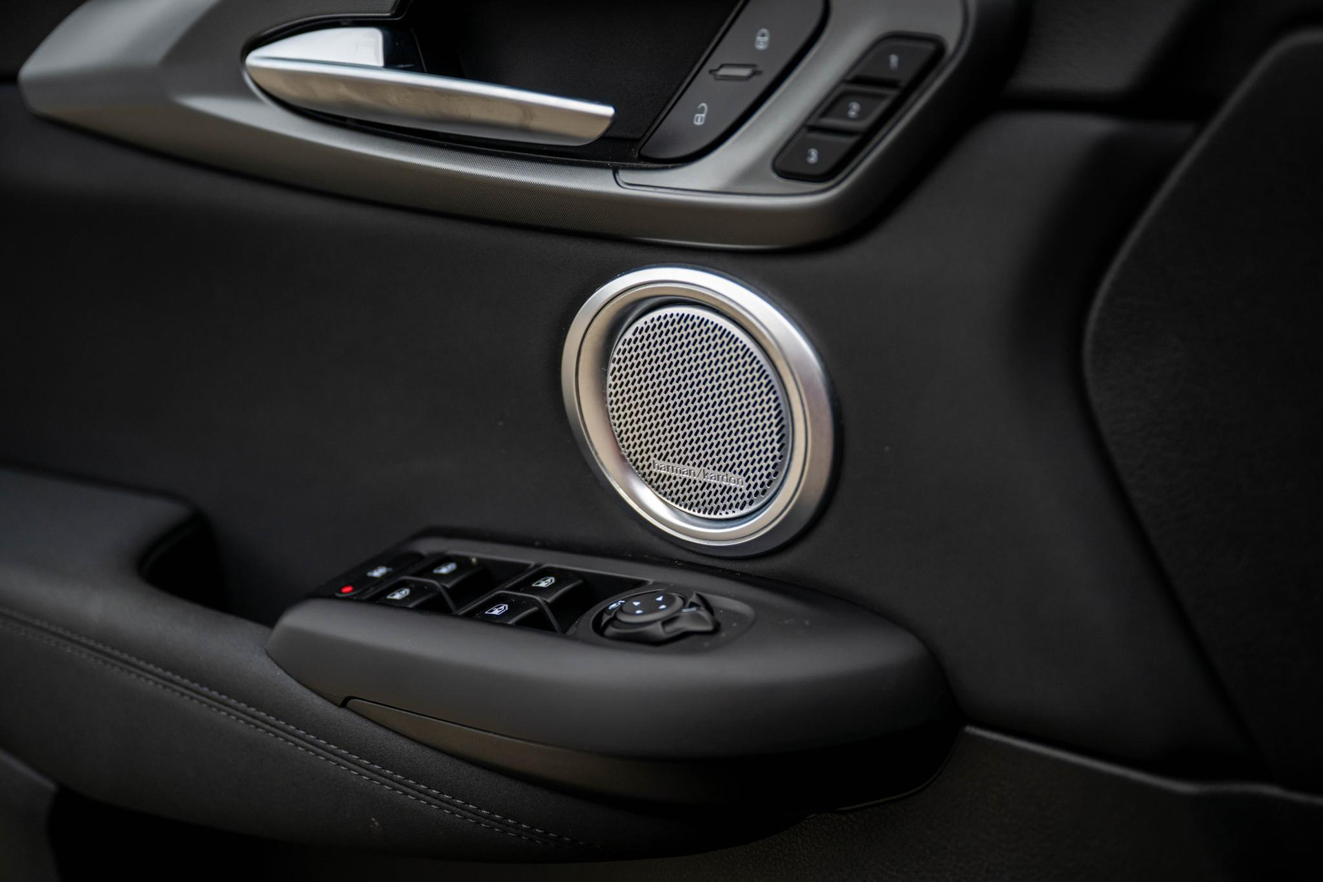Geperforeerd zwart lederen bekleding met grijze stiksels